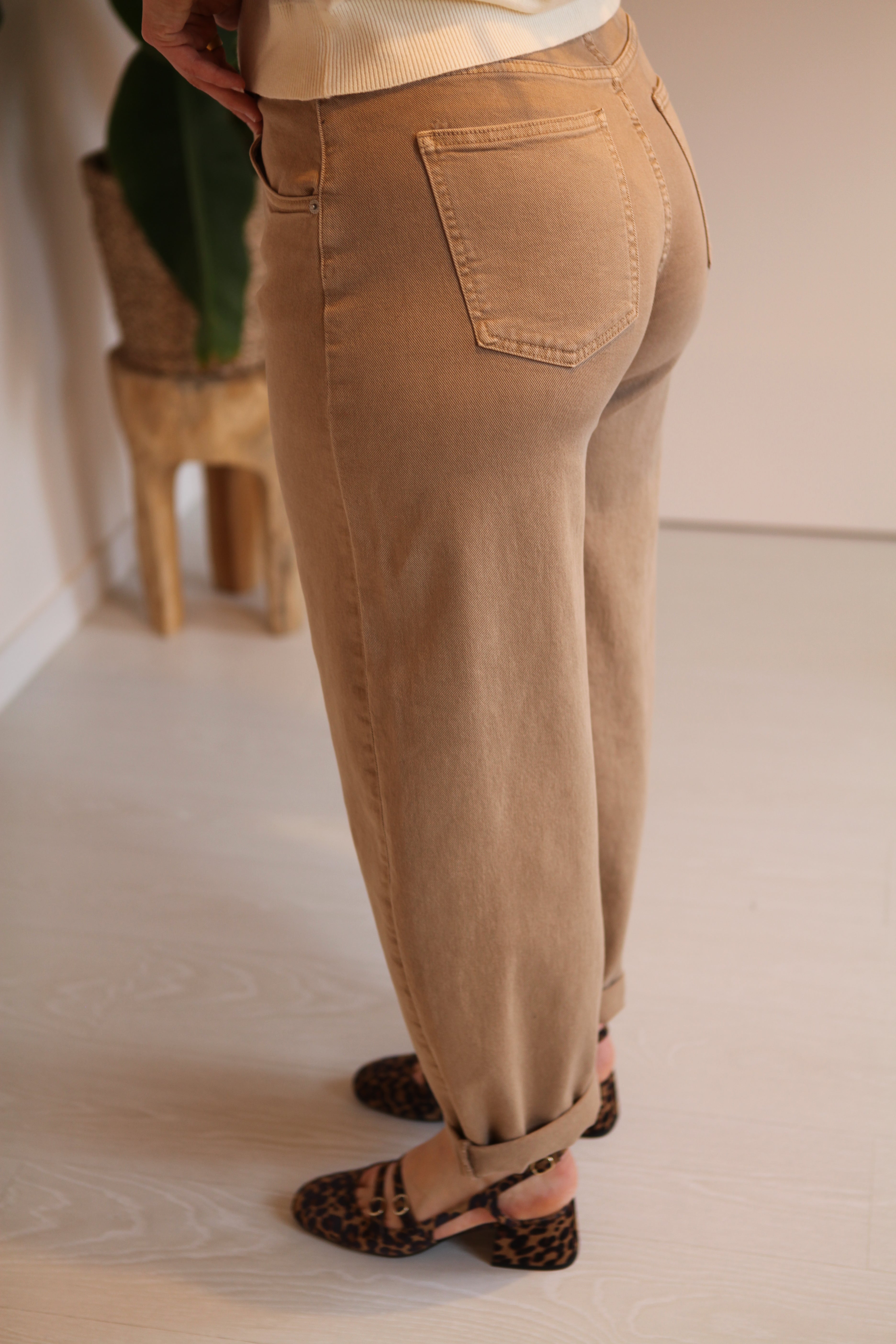 Ellie Beige Barrel Jeans